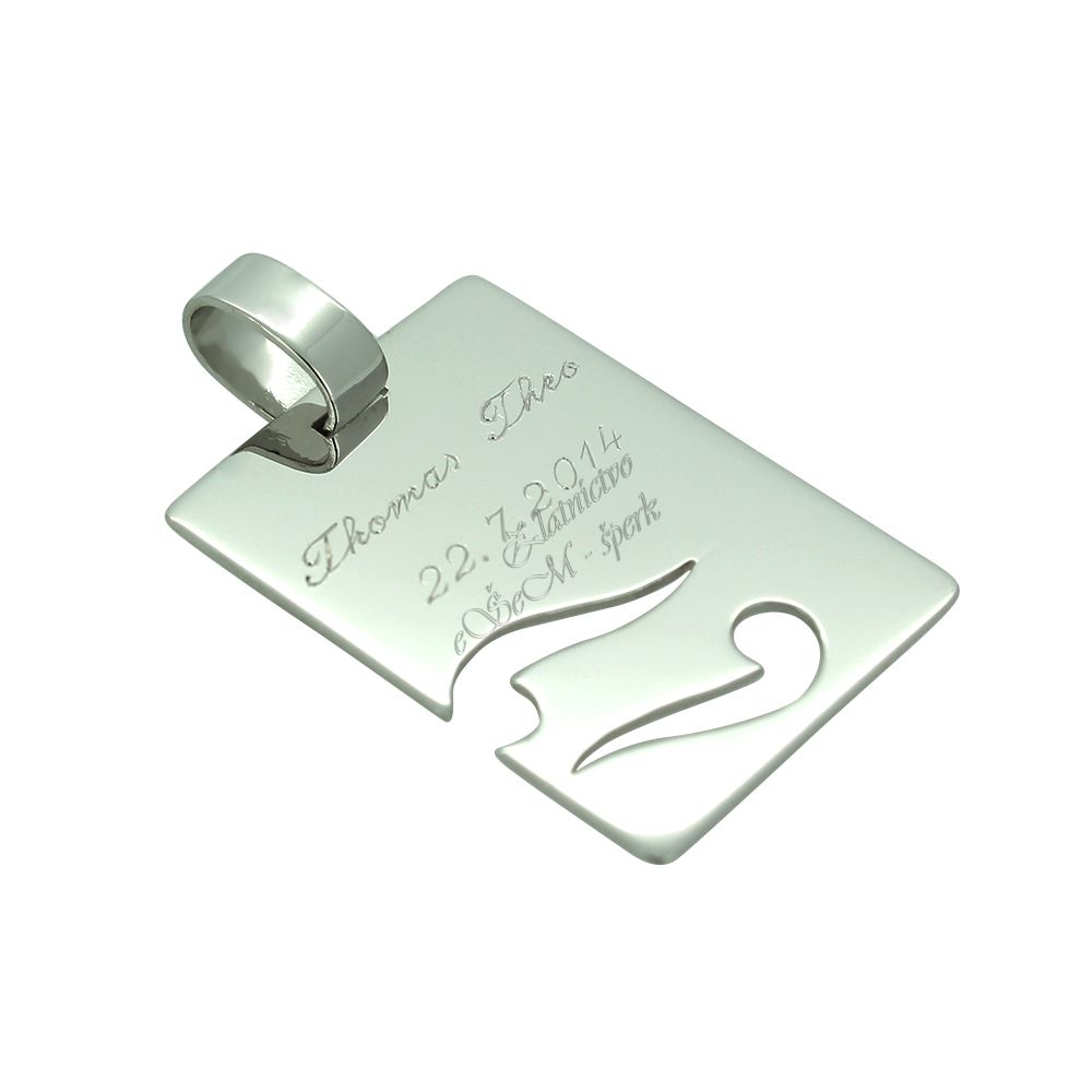Prívesok vyrobený z bieleho 14 karátového zlata, rhodiovaný.